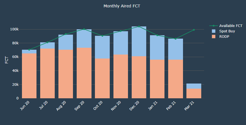 The bars show the FCT aired compared with the availabe FCT for the particular month.